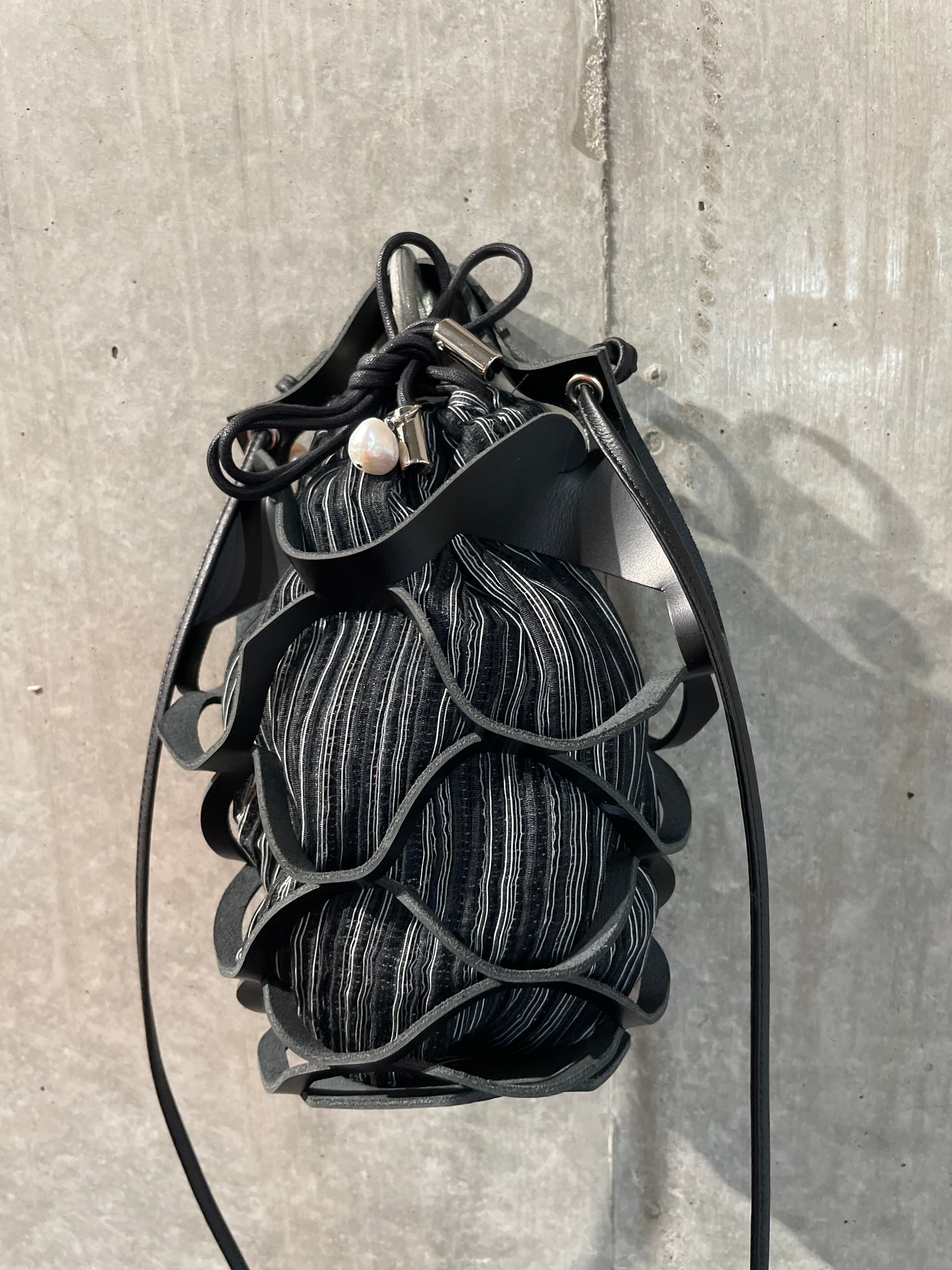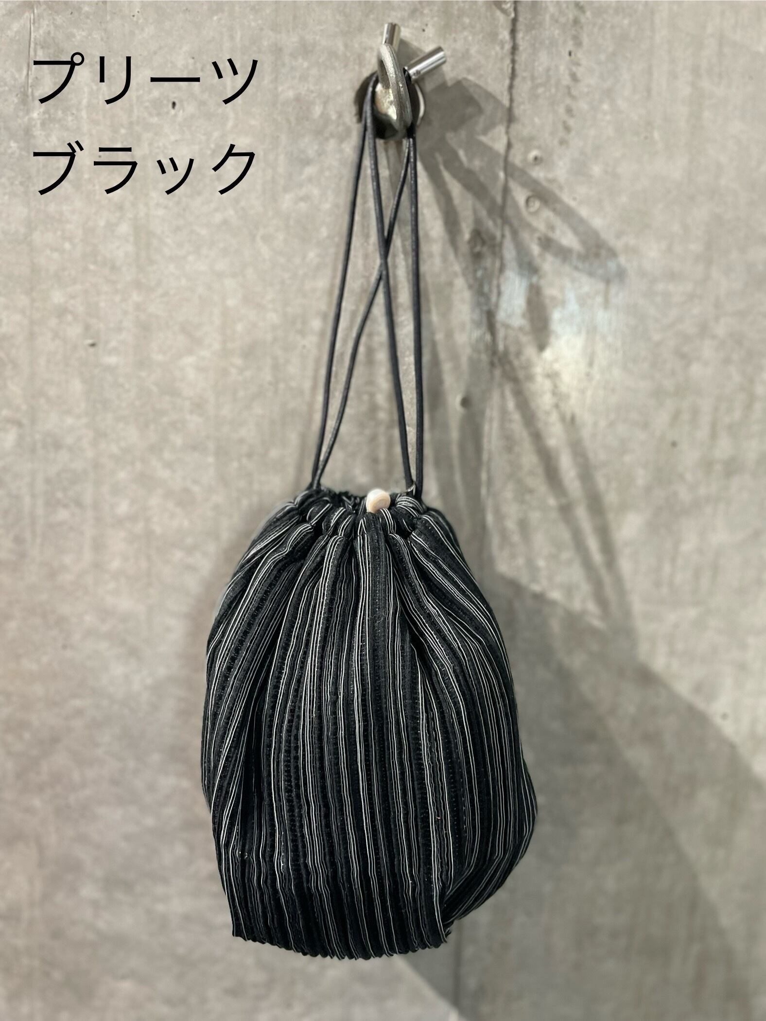 ・プリーツ巾着:こちらのプリーツ生地は古くからの日本の技術で